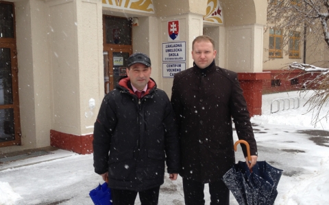 На пятом снимке: Николай Мадфес, заместитель Руководителя Администрации города Дубна, и Петер Марушинец, мэр Нова Дубницы, у Дома культуры Нова Дубницы