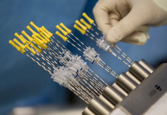 1. Иглы для введения источников во время брахитерапии рака предстательной железы.